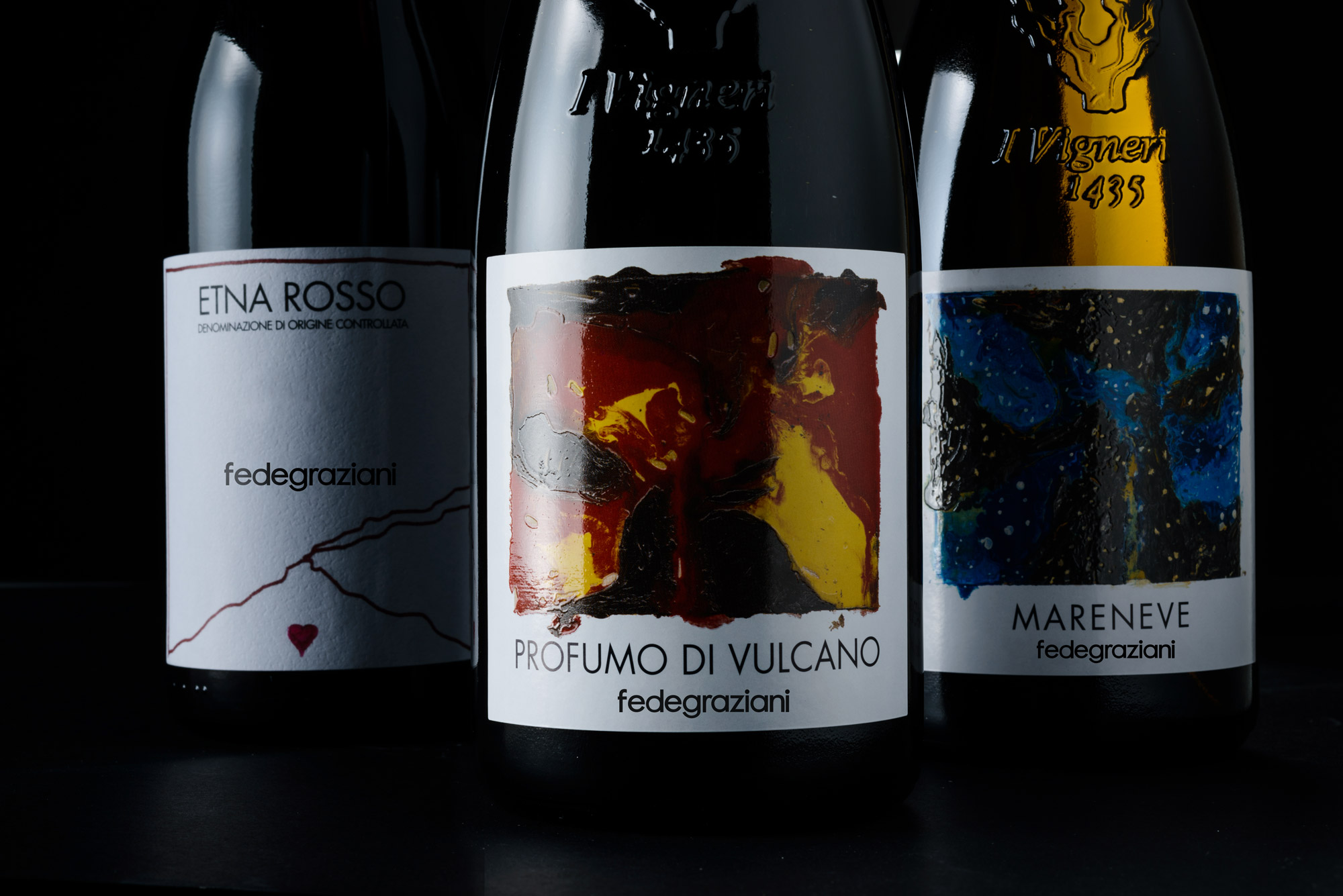 L’intento di TEAM99 è stato quello di esprimere i valori di Federico Graziani, viticoltore e produttore di vino siciliano. La particolarità della produzione di Graziani è la coltivazione di vigne in terreni situati alle pendici dell’Etna, sottoposte a climi vulcanici d’alta quota e quindi alla produzione di vini dall’anima decisa.