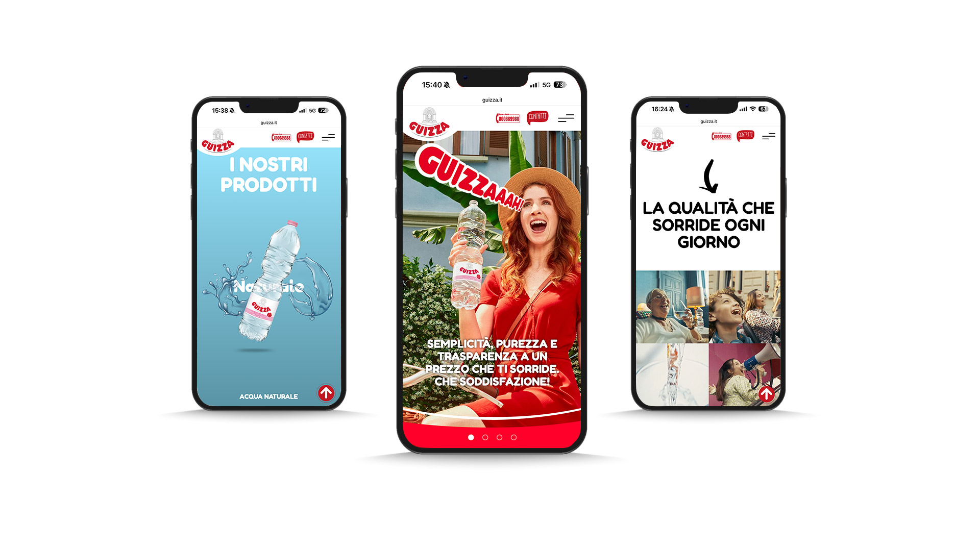 Abbiamo realizzato il nuovo sito web di Guizza in collaborazione con RED ROBIGLIO & DEMATTEIS. Il progetto riflette lo spirito del brand, rappresentato dall’iconico Guizzaaah!, presente anche nei nuovi spot pubblicitari. Il sito trasmette l’allegria e il senso di appartenenza che caratterizzano gli spot, dove persone di ogni tipo esprimono la loro soddisfazione per l’acqua Guizza. I nuovi spot, firmati da RED ROBIGLIO & DEMATTEIS, sono stati girati a Milano e sono disponibili nei formati da 30”, 15” e 10″. La campagna è in onda dal 25 giugno per 27 settimane sulle reti Rai e Mediaset.