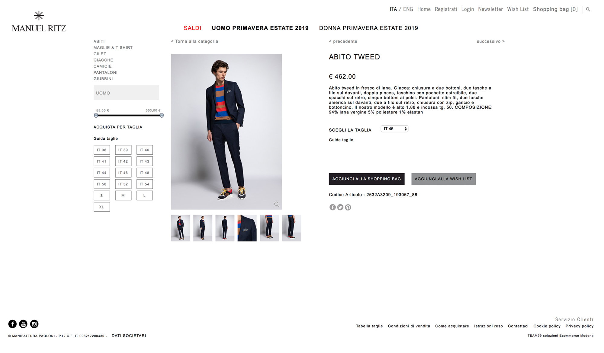 Lo Shop Online Manuel Ritz è basato sulla piattaforma proprietaria di TEAM99, che garantisce una rapidità e flessibilità di sviluppo e una ampia gamma di funzionalità dedicate al mondo del fashion e dell’abbigliamento .